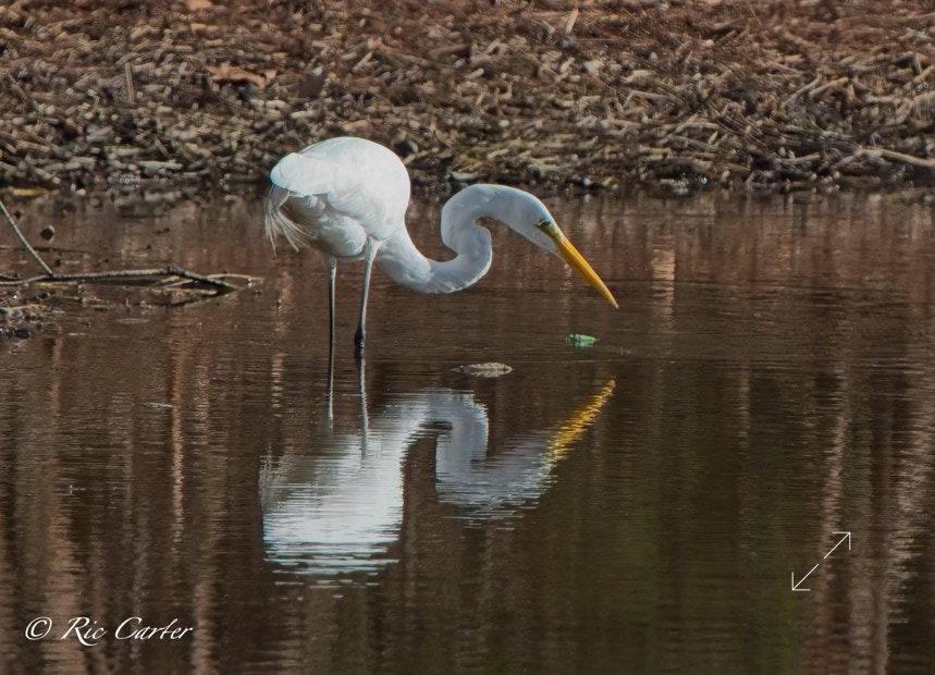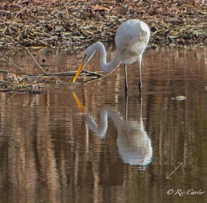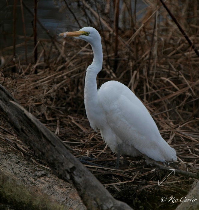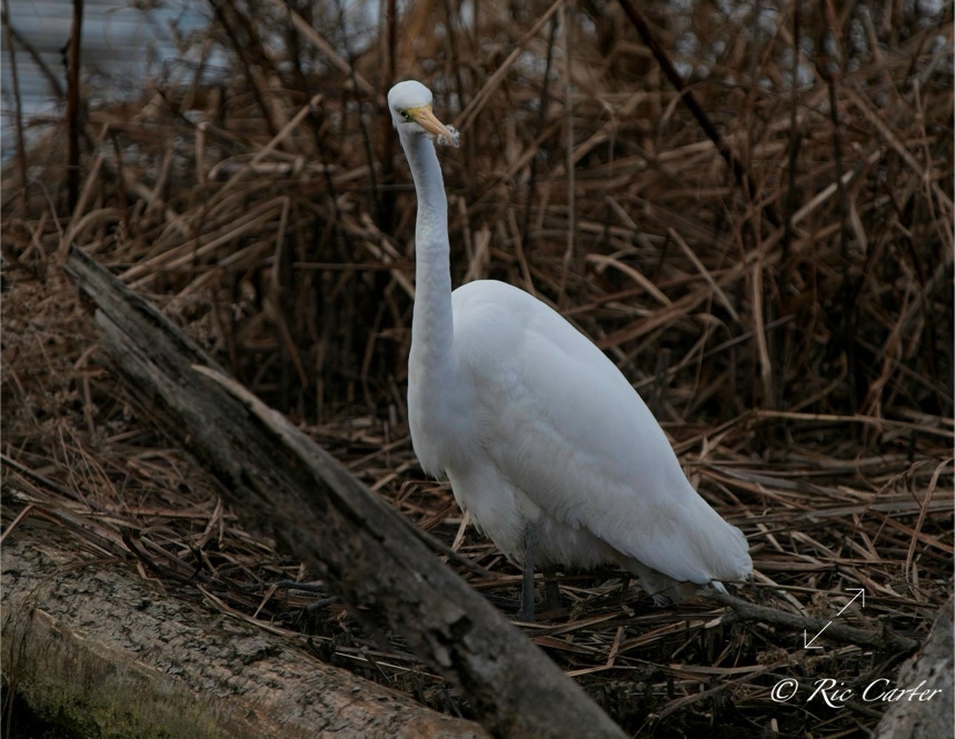 Great Egrets and a Great Blue Heron, our two largest wading birds, are this week’s selections. They were all on the southern shore of the Pamlico.