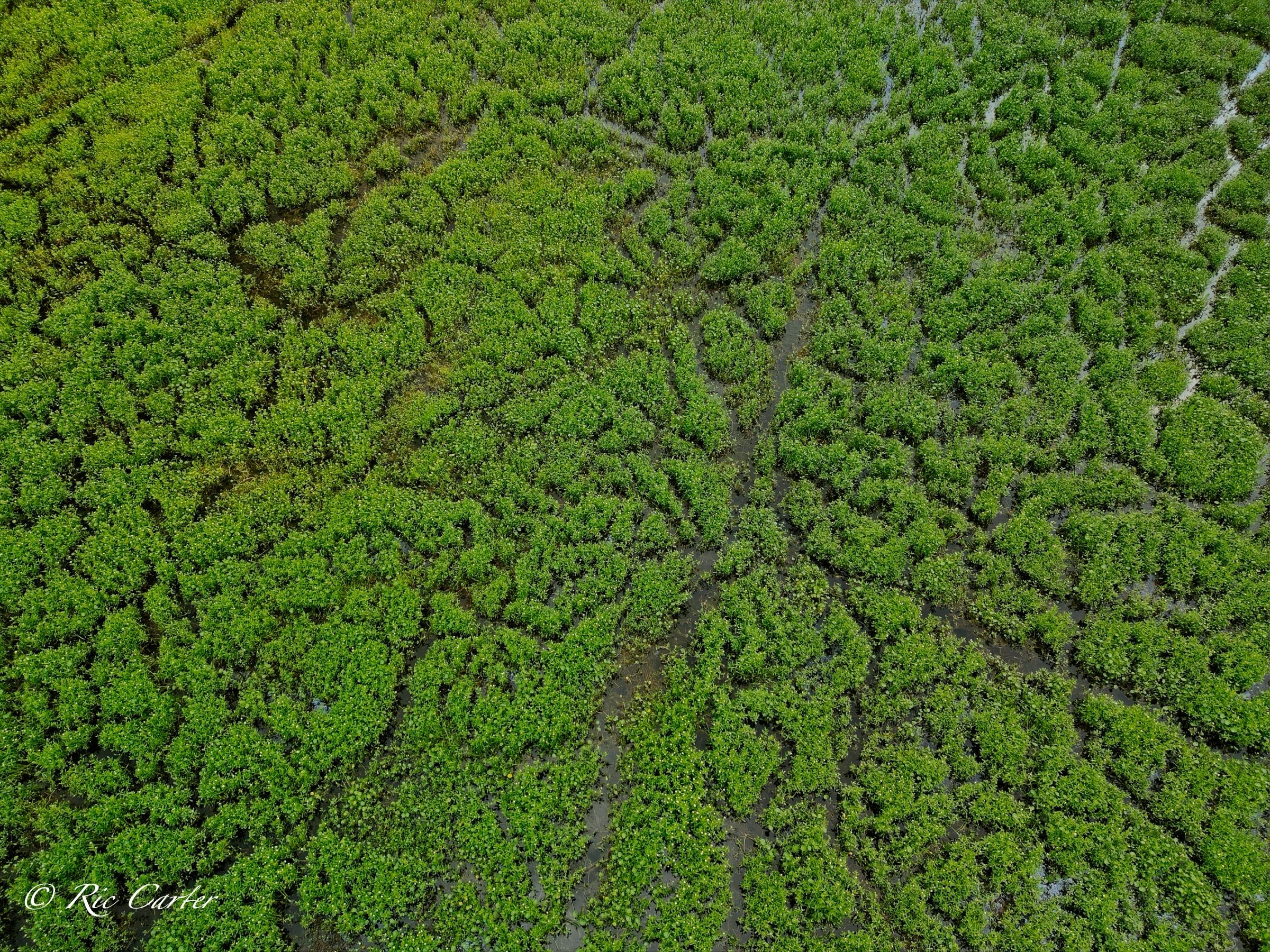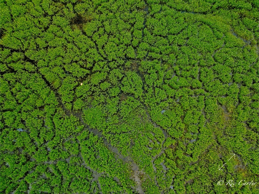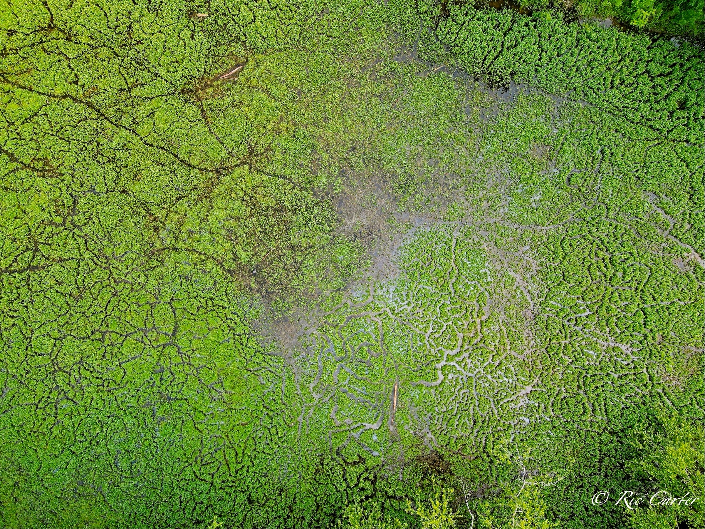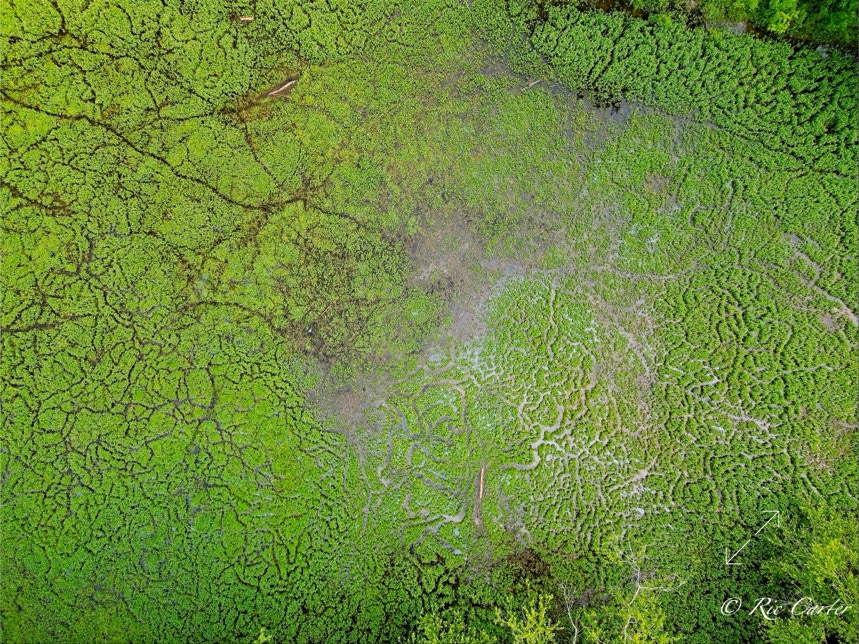 We’ve explored a couple of locations that had paths created by little wild creatures. We saw turtle paths in the mud creek bottom. And there were the paths made visible in a coastal prairie by a controlled burn. This week’s paths are seen in an old sandpit shallow. There’s one made by the hands, -er tires, of man.