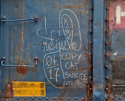 When the trains are around, chances are there’s an art show waiting for you nearby. Just check those old cars for classics, and newer work on long distance cars.
