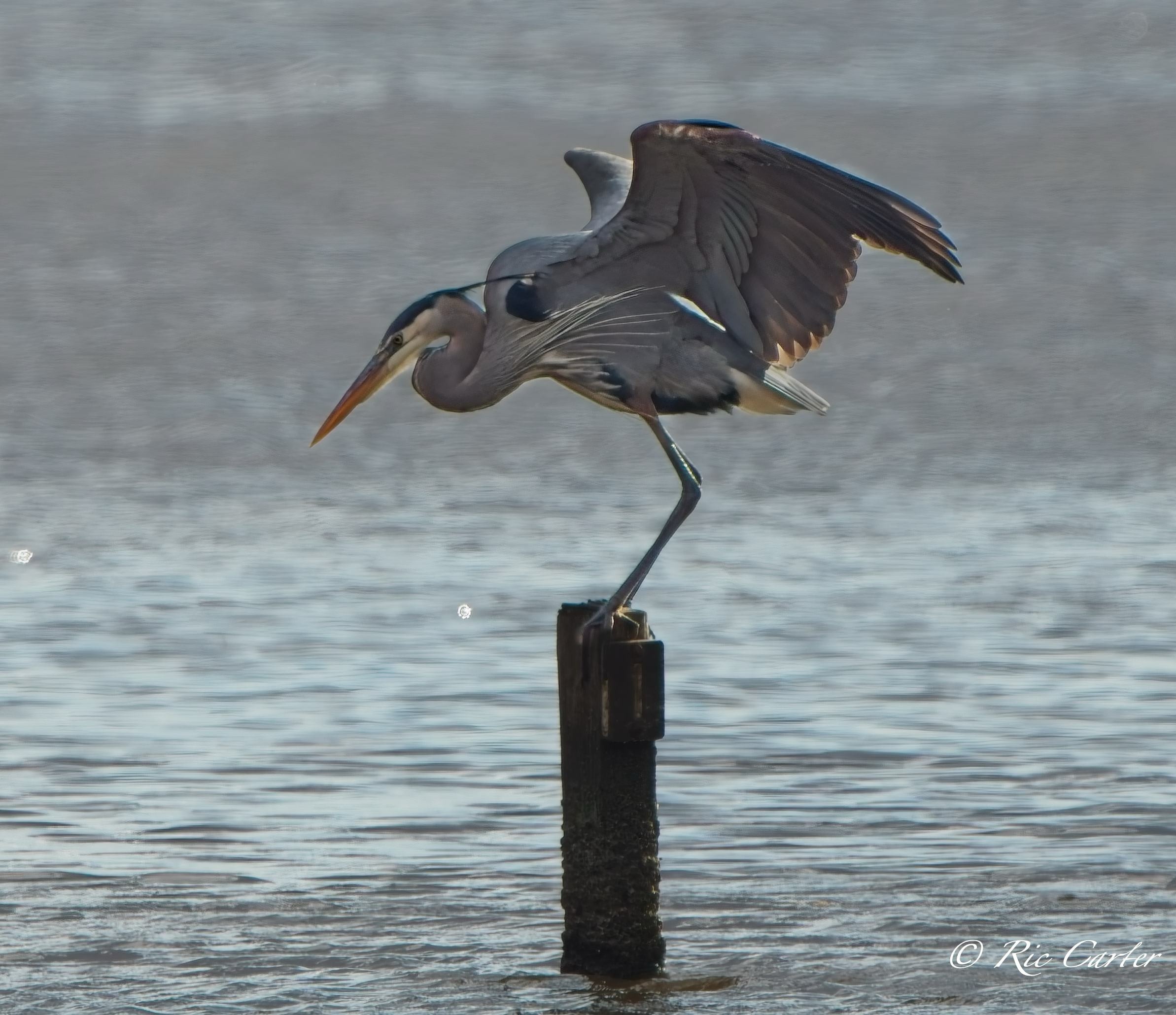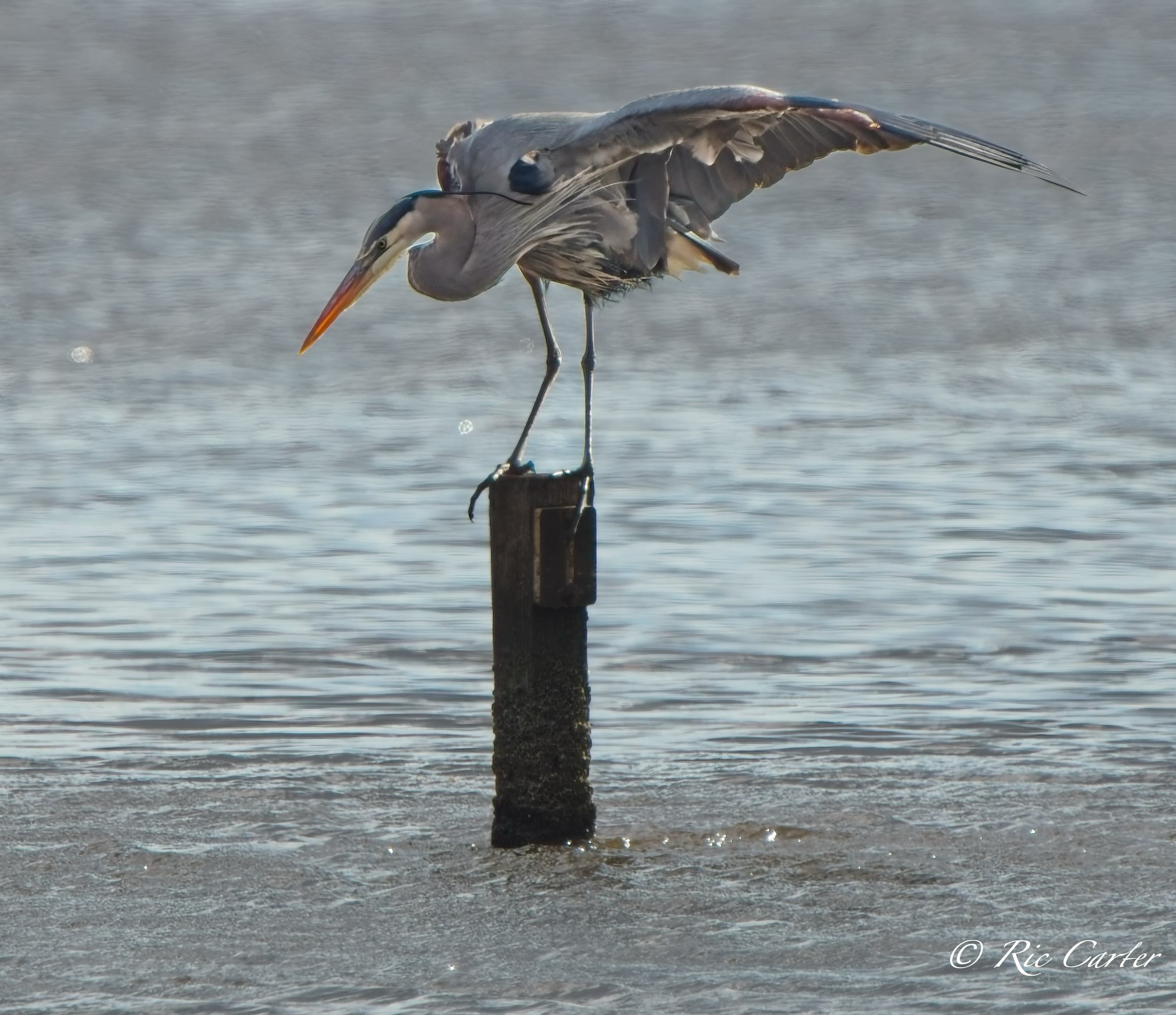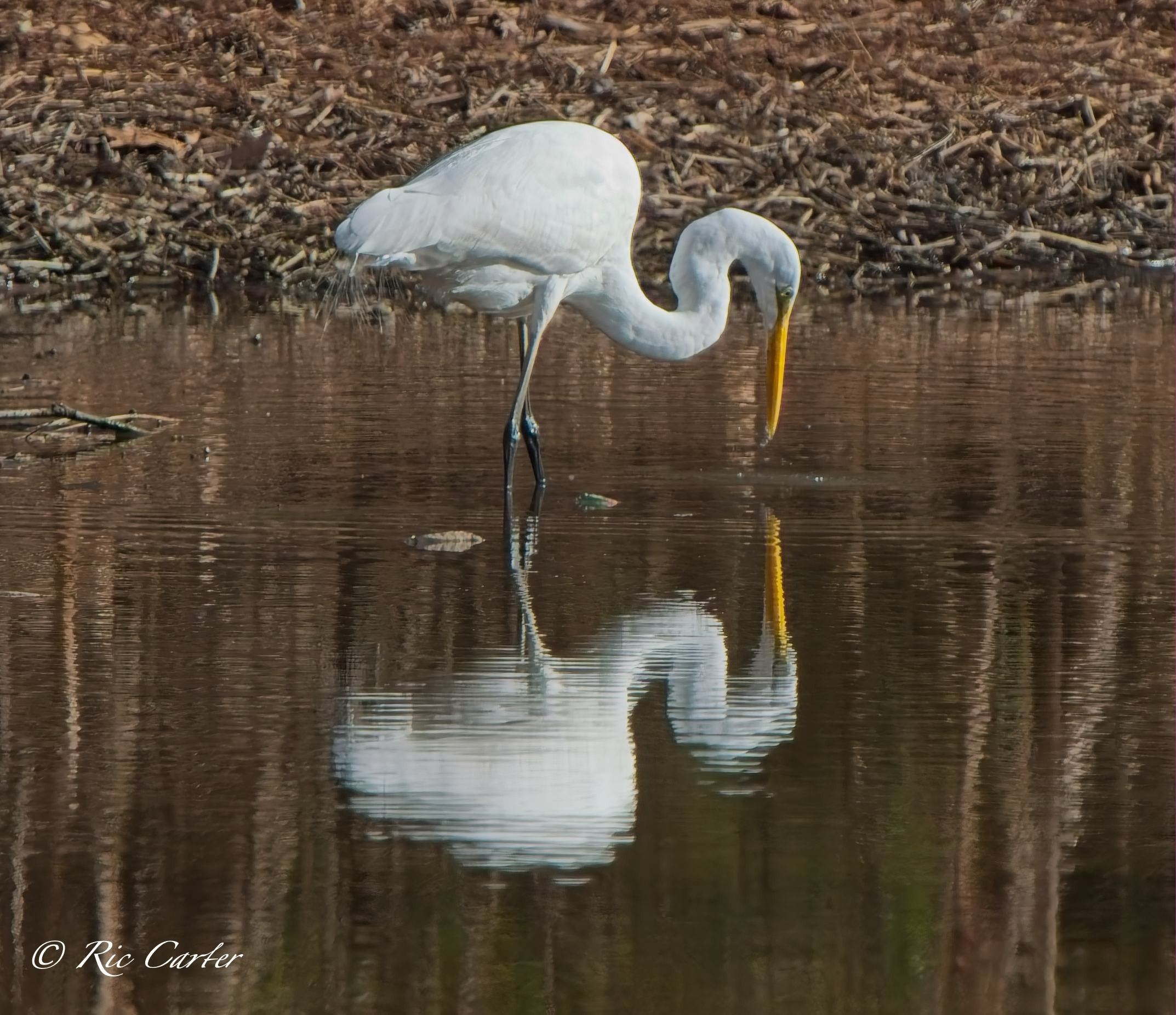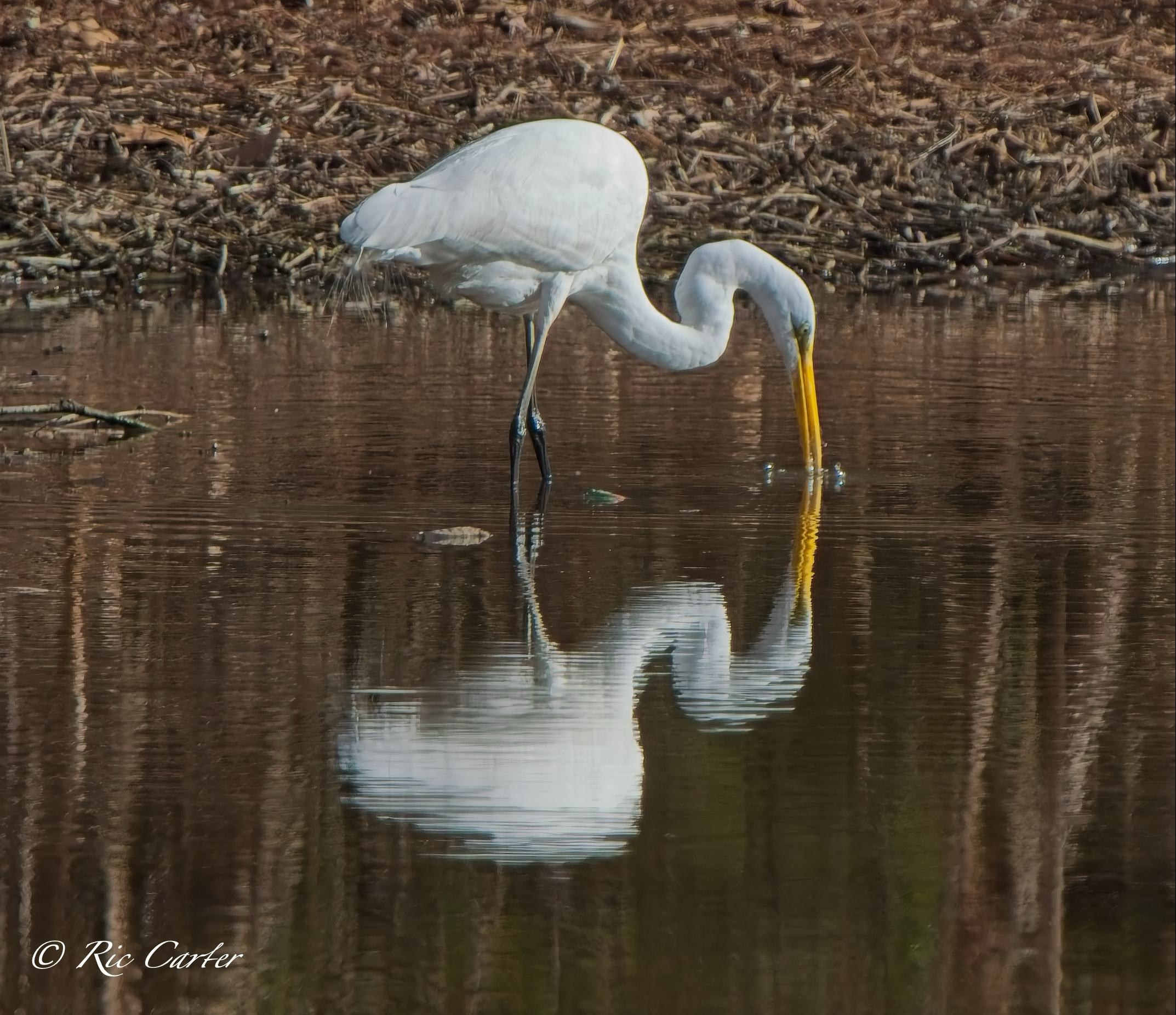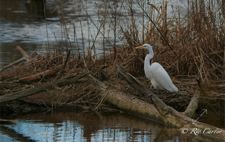 Great Egrets and a Great Blue Heron, our two largest wading birds, are this week’s selections. They were all on the southern shore of the Pamlico.