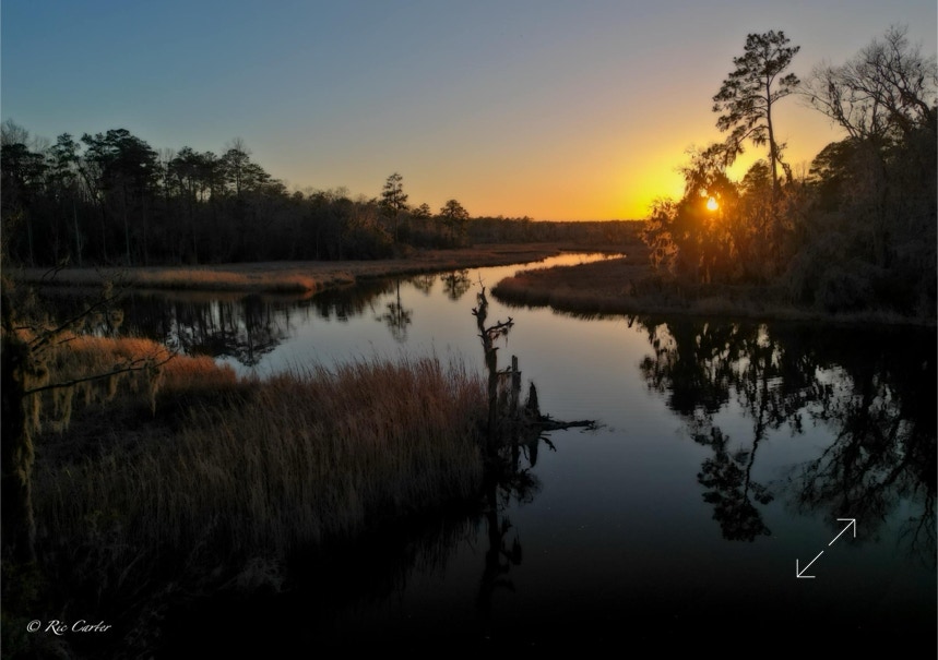 One of our oldest attempts to create a vacation community on the Southside of the Pamlico was Crystal Beach. It lies at the mouth of Nevil Creek. I got by there around sunset last week. It’s an interesting and beautiful place. Forty years ago, we’d frequently take my skiff up the creek fishing and sightseeing. Here you can get the view of the rich wetlands along the creek thanks to Skeeter the Drone.