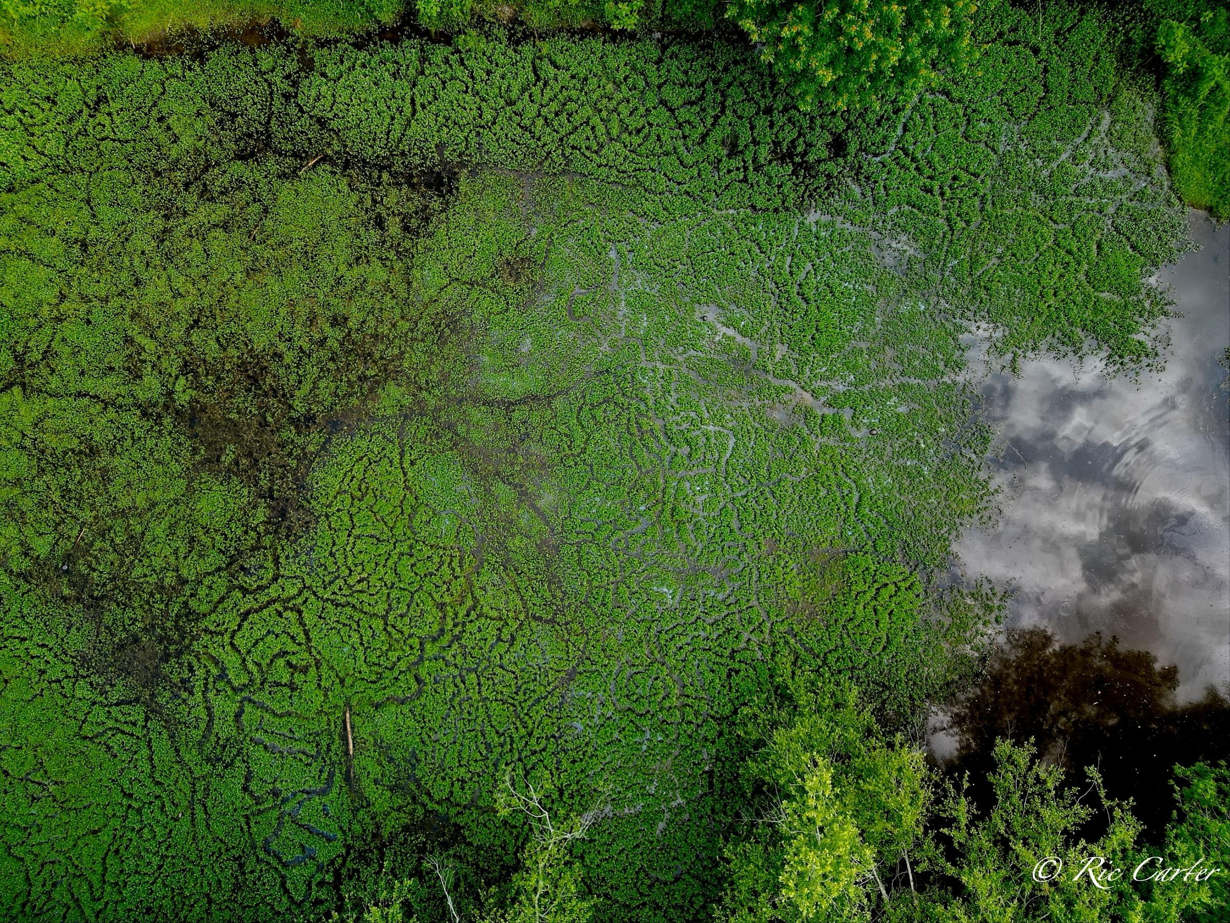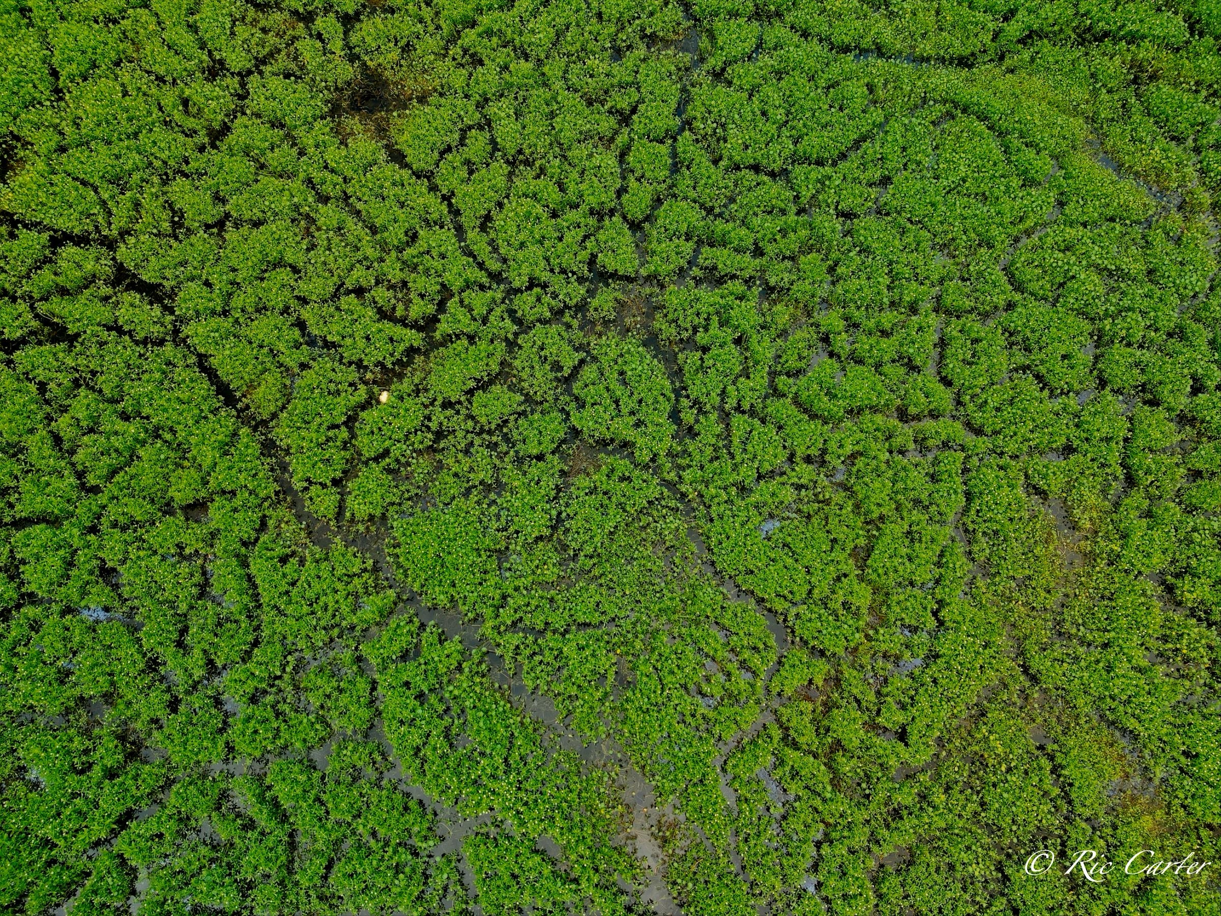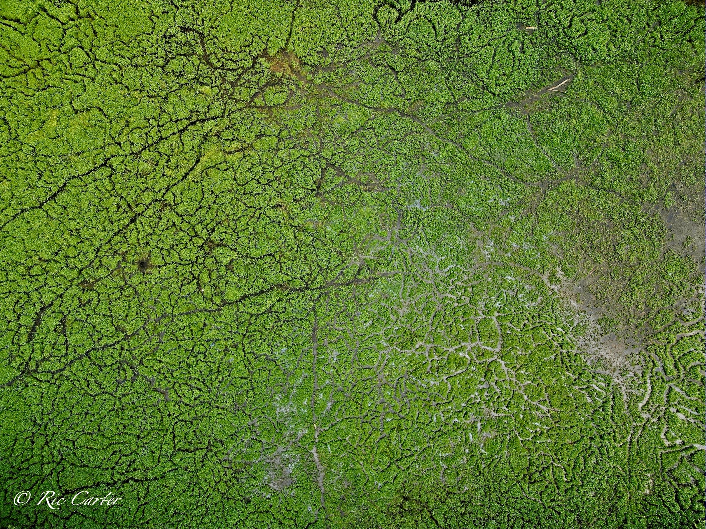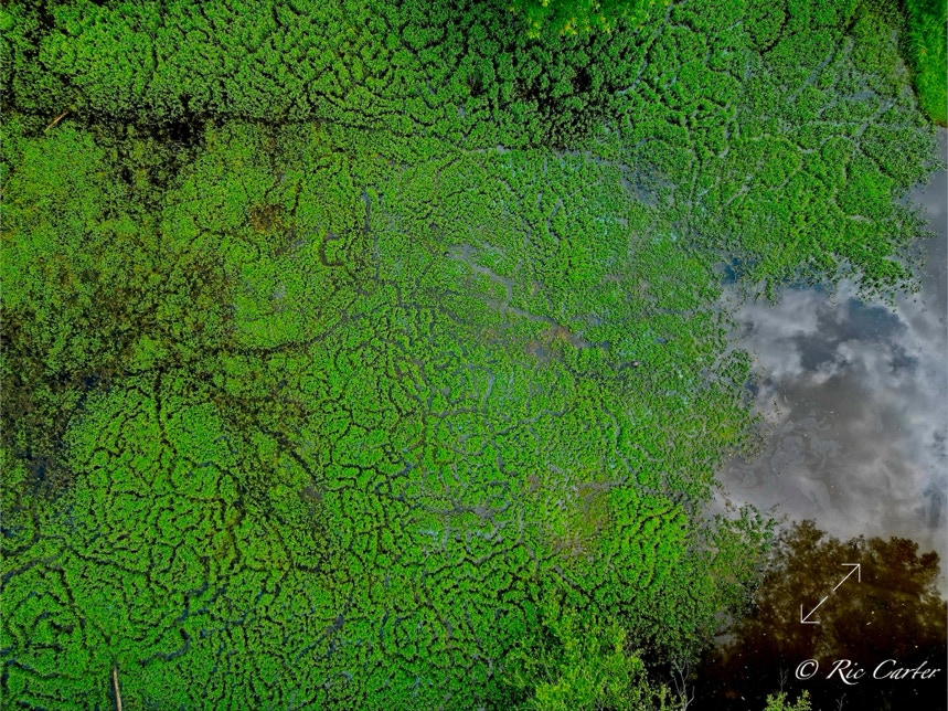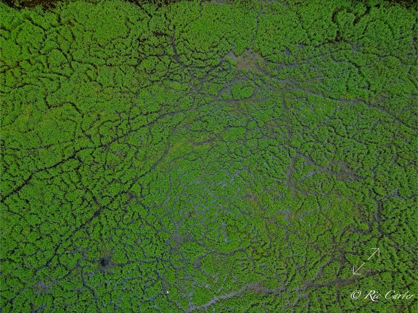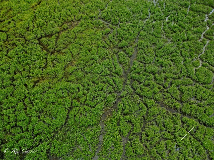 We’ve explored a couple of locations that had paths created by little wild creatures. We saw turtle paths in the mud creek bottom. And there were the paths made visible in a coastal prairie by a controlled burn. This week’s paths are seen in an old sandpit shallow. There’s one made by the hands, -er tires, of man.