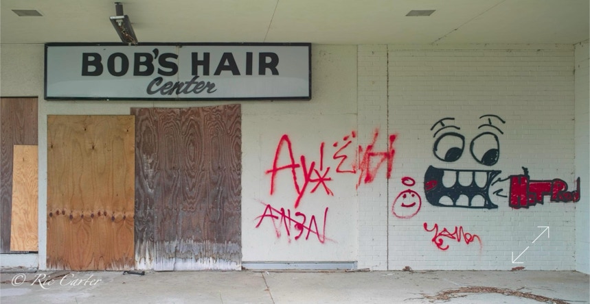 Patterns. Memories. Dreams. Signs. Landmarks. Evidence of prior life. Deserted Mall, Wilson NC.