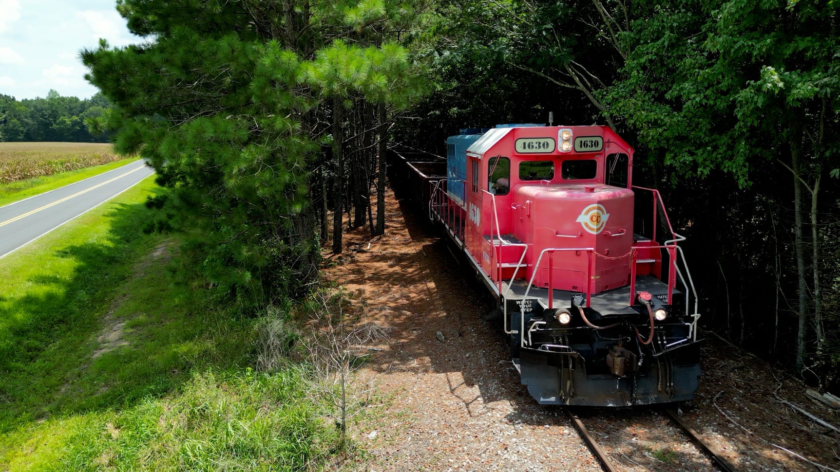 The Branch is the old Norfolk Southern line to Belhaven. It has been worked by independent short line Carolina Coastal Railway. Several afternoons each week, Train 265 heads out across Beaufort County. This is the July 30 train getting back home to Pinetown.